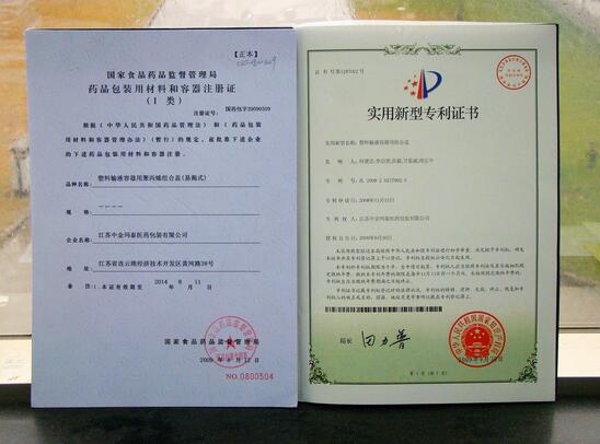 公司又一塑料輸液產品取得專利證書和生產注冊證