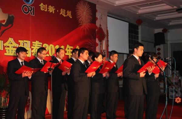 玉兔歡歌辭舊歲,祥龍起舞迎新年。2月4日,連云港世紀(jì)緣國際酒店七樓會議廳內(nèi)燈光璀璨,氣氛熱烈,洋溢著節(jié)日的喜慶和歡樂。以“創(chuàng)新、超越”為主題的中金瑪泰2011年年會正在這里隆重召開。來自公司各條戰(zhàn)線的三百余名員工歡聚一堂,共慶新春佳節(jié)。