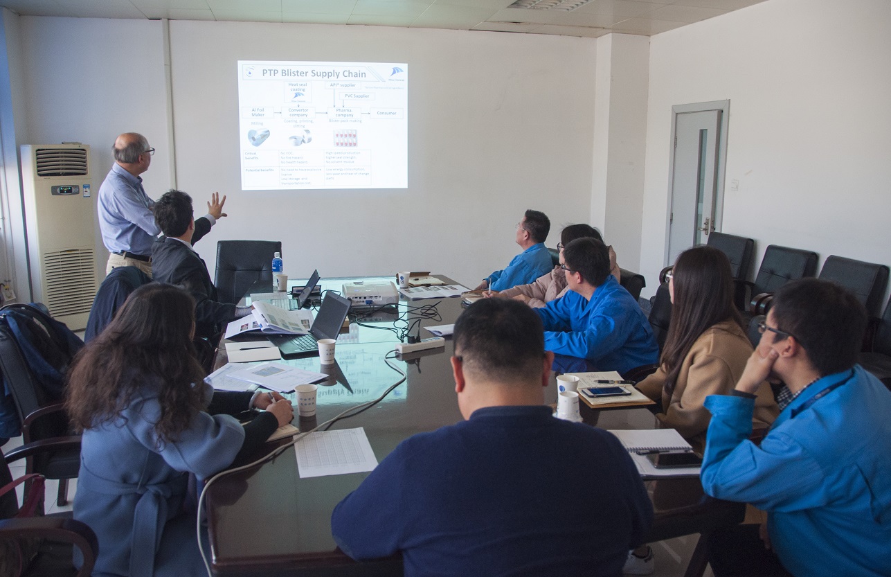 本次交流會(huì)上,三井公司的技術(shù)人員重點(diǎn)分享了歐美、日本、印度等海外藥包材市場(chǎng)的水性化進(jìn)展趨勢(shì),以及泡罩包裝領(lǐng)域PVC/PVDC復(fù)合硬片的應(yīng)用現(xiàn)狀及增長(zhǎng)趨勢(shì)等相關(guān)信息。同時(shí)他們也對(duì)三井公司最新的水性新材料研發(fā)進(jìn)展情況及推廣計(jì)劃等內(nèi)容做了詳細(xì)介紹。雙方并就未來合作的模式提出了一些設(shè)想,并達(dá)成共識(shí)。希望以后能繼續(xù)保持密切的技術(shù)交流,在水性及其他領(lǐng)域開展廣泛的合作,構(gòu)建戰(zhàn)略合作伙伴關(guān)系,為實(shí)現(xiàn)雙贏的目標(biāo)而一起努力。