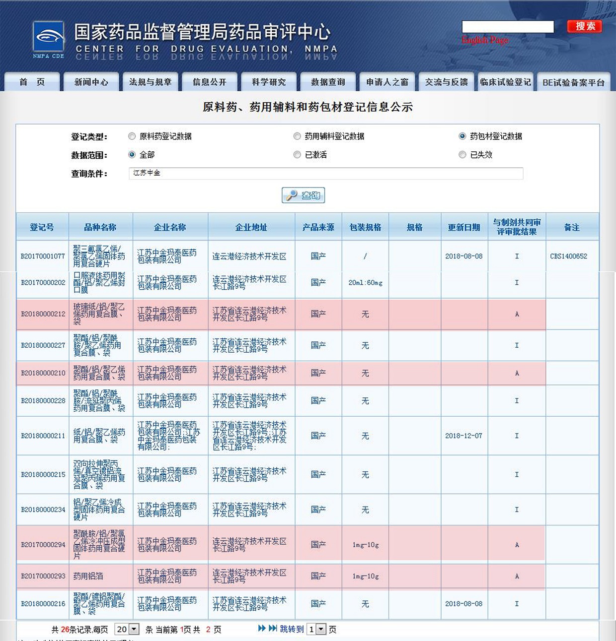 自國家藥品監(jiān)督管理局發(fā)布藥包材、藥用輔料與藥品共同審評(píng)審批政策以來,中金瑪泰積極響應(yīng),組織專業(yè)人員編制審評(píng)審批所需相關(guān)資料,截至2019年3月,公司已在國家藥品監(jiān)督管理局藥品審評(píng)中心(CDE)登記平臺(tái)上登記了26個(gè)產(chǎn)品并獲得公示。